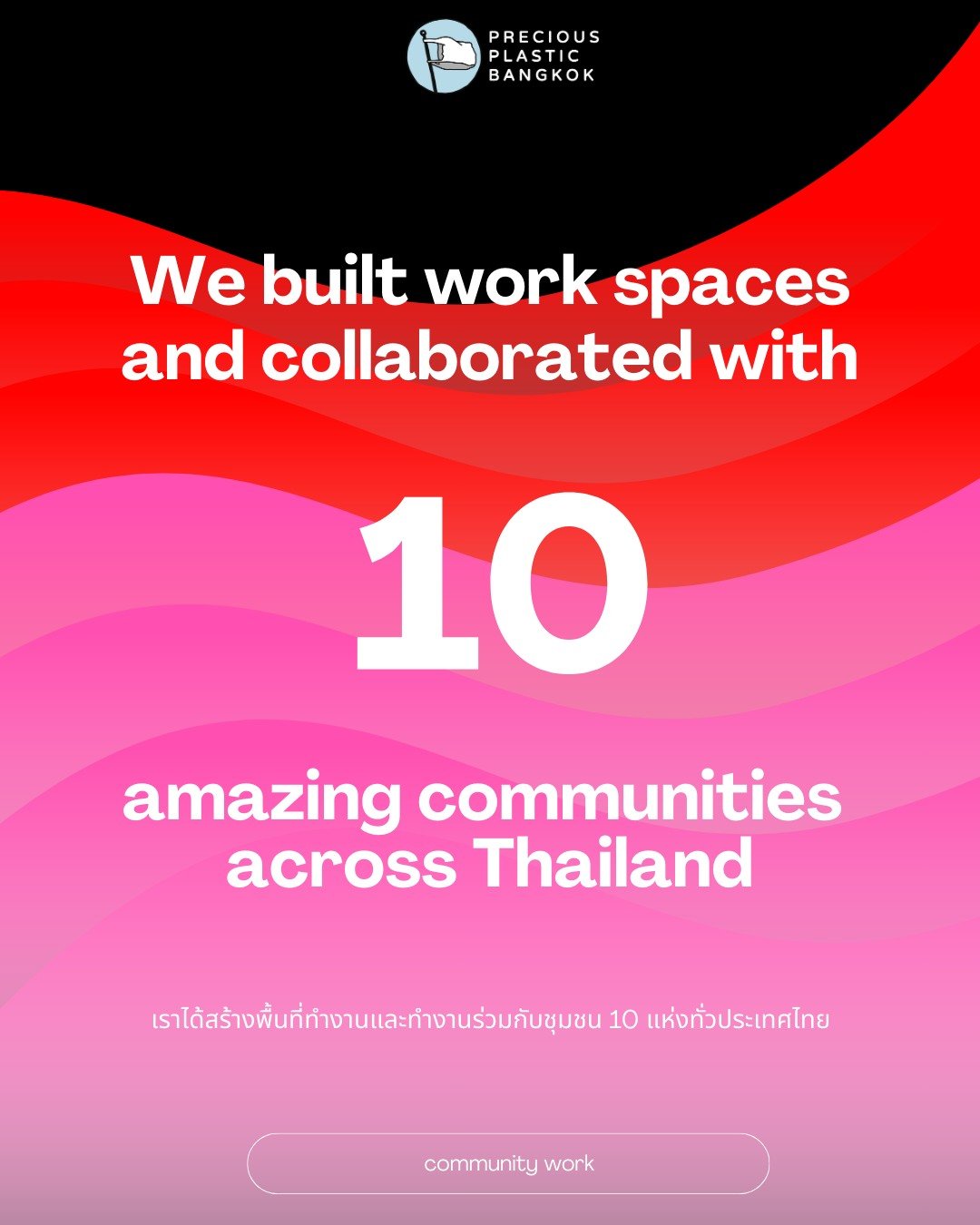 Precious Plastic Bangkok ขอขอบคุณทุกการสนับสนุนจากผู้บริจาค ผู้ให้ทุน ชุมชนต่างๆ FREC Bangkok และทุกคนที่เข้าร่วมกิจกรรมกับเรา ความสำเร็จทั้งหมดนี้เกิดขึ้นไม่ได้เลยหากขาดการช่วยเหลือจากทุกภาคส่วน เราได้ร่วมกันสร้างสรรค์ พัฒนาชุมชน และเปลี่ยนขยะให้กลายเป็นโอกาสที่ยิ่งใหญ่