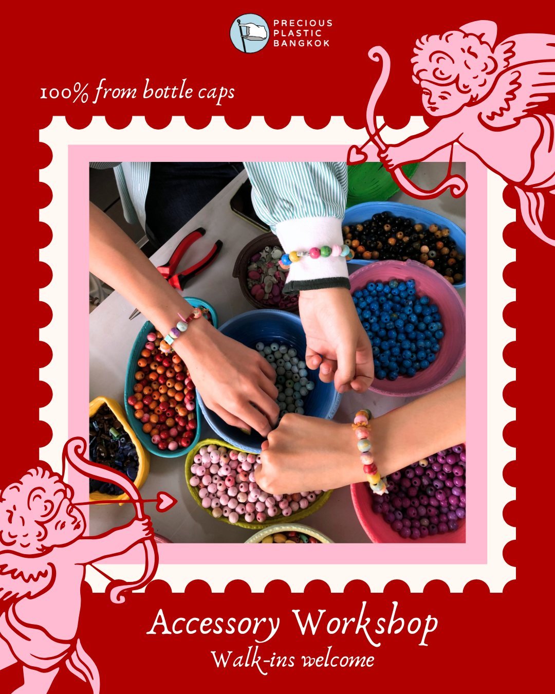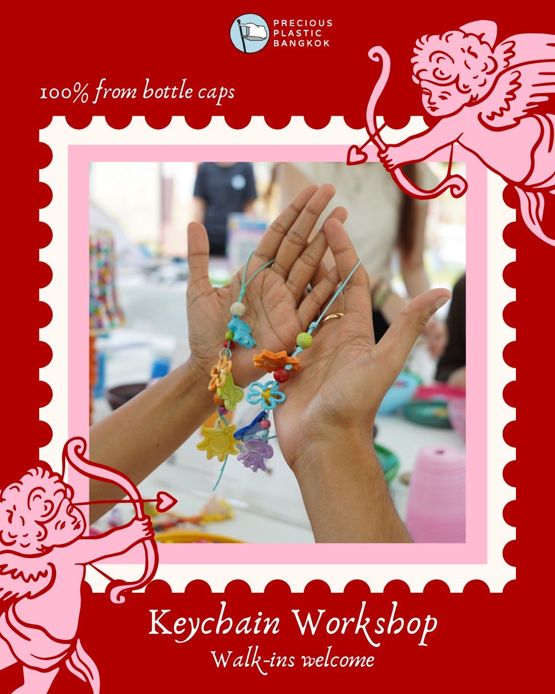 เวิร์กชอปที่สร้างสรรค์ชิ้นงานจากขยะพลาสติกใกล้ตัว อย่างฝาขวดน้ำ โดยไม่ใช้สารเติมแต่ง พร้อมสีสันสดใส ต้อนรับเทศกาลวาเลนไทน์และตรุษจีนนี้